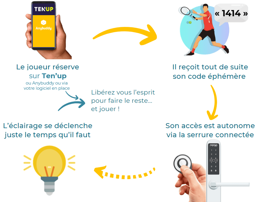 Les joueurs accèdent aux courts et aux vestiaires/club house avec le même code