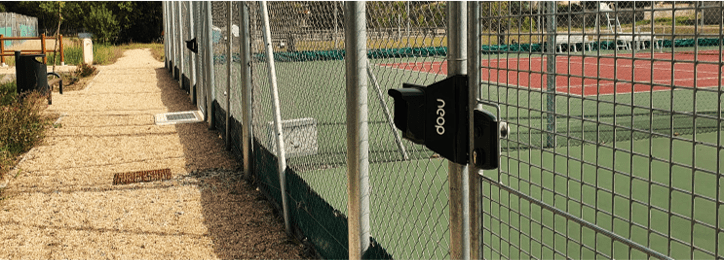 Le Kit verrouille un portillon. Il est aussi possible d'équiper un enclos spécifique ou un bâtiment regroupant plusieurs courts.